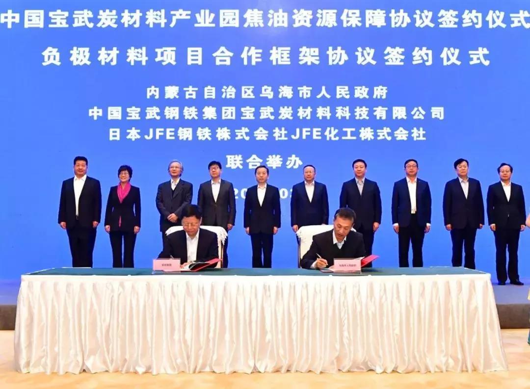 為實(shí)現(xiàn)中國(guó)寶武戰(zhàn)略規(guī)劃確立的“一基五元”產(chǎn)業(yè)定位,完成碳基新材料戰(zhàn)略轉(zhuǎn)型發(fā)展新任務(wù),也為了進(jìn)一步保障烏海炭材料產(chǎn)業(yè)園項(xiàng)目落地。2019年3月15日,由寶武炭材與黃河集團(tuán)合資的烏海寶化萬辰煤化工有限責(zé)任公司,在千里山工業(yè)園區(qū)投資建設(shè)的5萬噸針狀焦生產(chǎn)線炭材料一體化項(xiàng)目舉行開工儀式;同時(shí),寶武炭材與烏海市簽訂焦油資源保障協(xié)議;寶武炭材與JFE化工簽訂鋰電池負(fù)極材料項(xiàng)目合作框架協(xié)議。